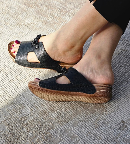 مدل دمپایی زنانه طبی اصل رنگ مشکی تمام چرم کد ۱۳۸