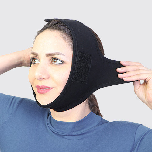 در پایان و در صورت نیاز میتوانید به کمک کش زیر چانهای، فشار موضعی را بر روی غبغب و چانه به مقدار لازم افزایش دهید