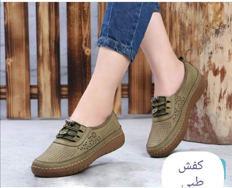 کفش_طبی زنانه، کفش طبی راحتی دخترانه، رنگ زیتونی، زیره پی یو سبک و با کیفیت